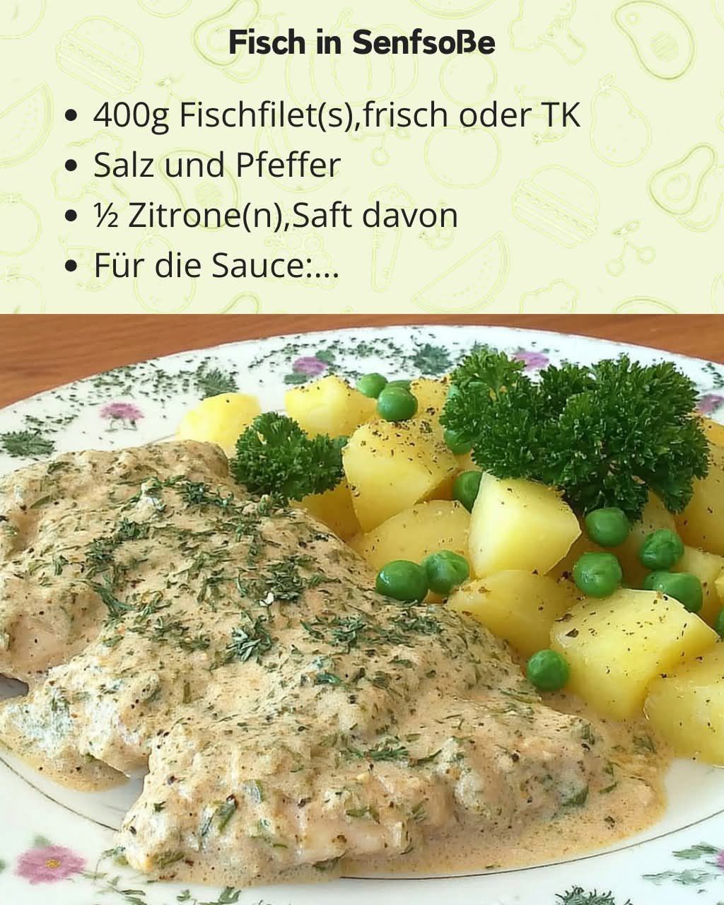 👩🏼‍🍳 Zutaten 🐟 400 g Fischfilet (frisch oder TK) 🧂 Salz & Pfeffer 🍋 ½ Zitrone (Saft davon) 👉 Für die Soße: 🥛 180 g Sahne 🥄 100 g Crème fraîche mit Kräutern 🥢 35 g Senf 🌿 1 EL Dill 🌱 2 EL Petersilie 🍞 1 EL Paniermehl 🥄 Zubereitung